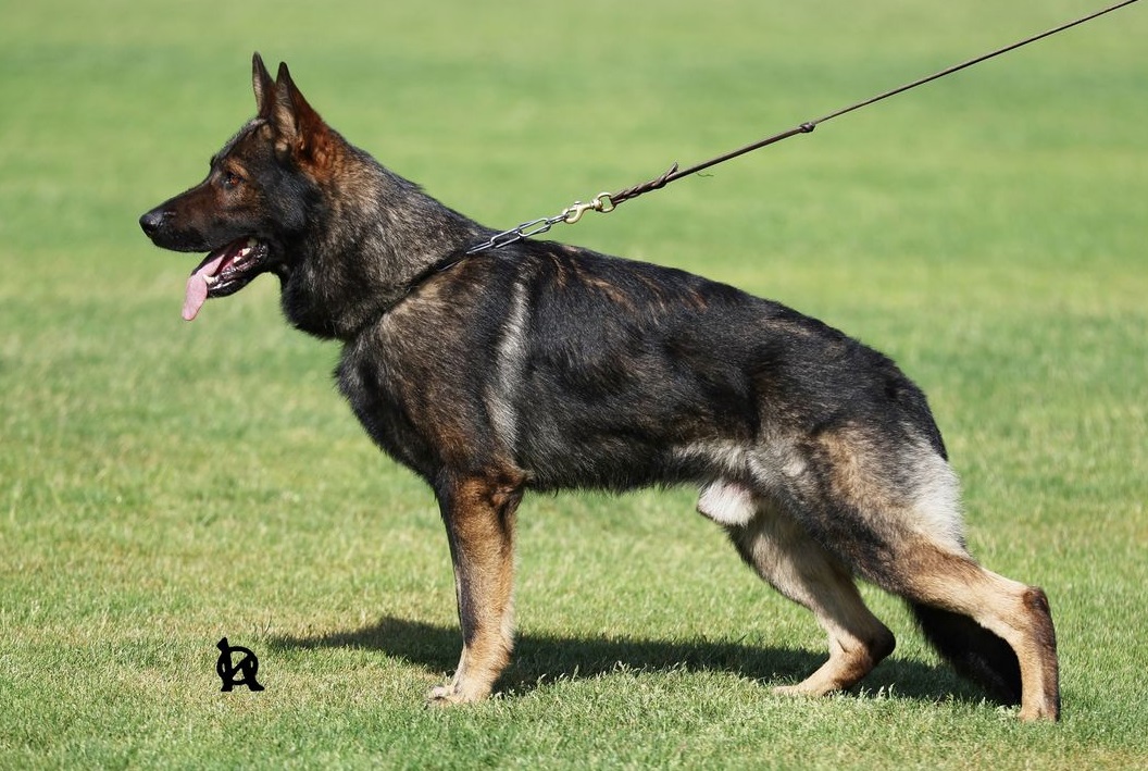 Ares is a large dominant male and is a military police service dog. In his work, he demonstrates excellent social behavior in various environments and strong defensive instincts. He has passed the highest exam IGP 3. Despite his size, he shows a great willingness to work with a beautiful expression. On defense, he has an extremely strong and quick bites. He is a huge (body height 67 cm, 100lbs), expressive, dominant male with a beautiful head and rich pigment. His exterior advantage is also rich, thick, bear fur. At first glance he makes an impressive impression.
